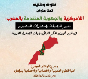 ندوة وطنية تحت عنوان: اللامركزية والجهوية المتقدمة بالمغرب: تقييم الحصيلة واستشراف المستقبل في أفق تخويل الحكم الذاتي لجهات الصحراء المغربية